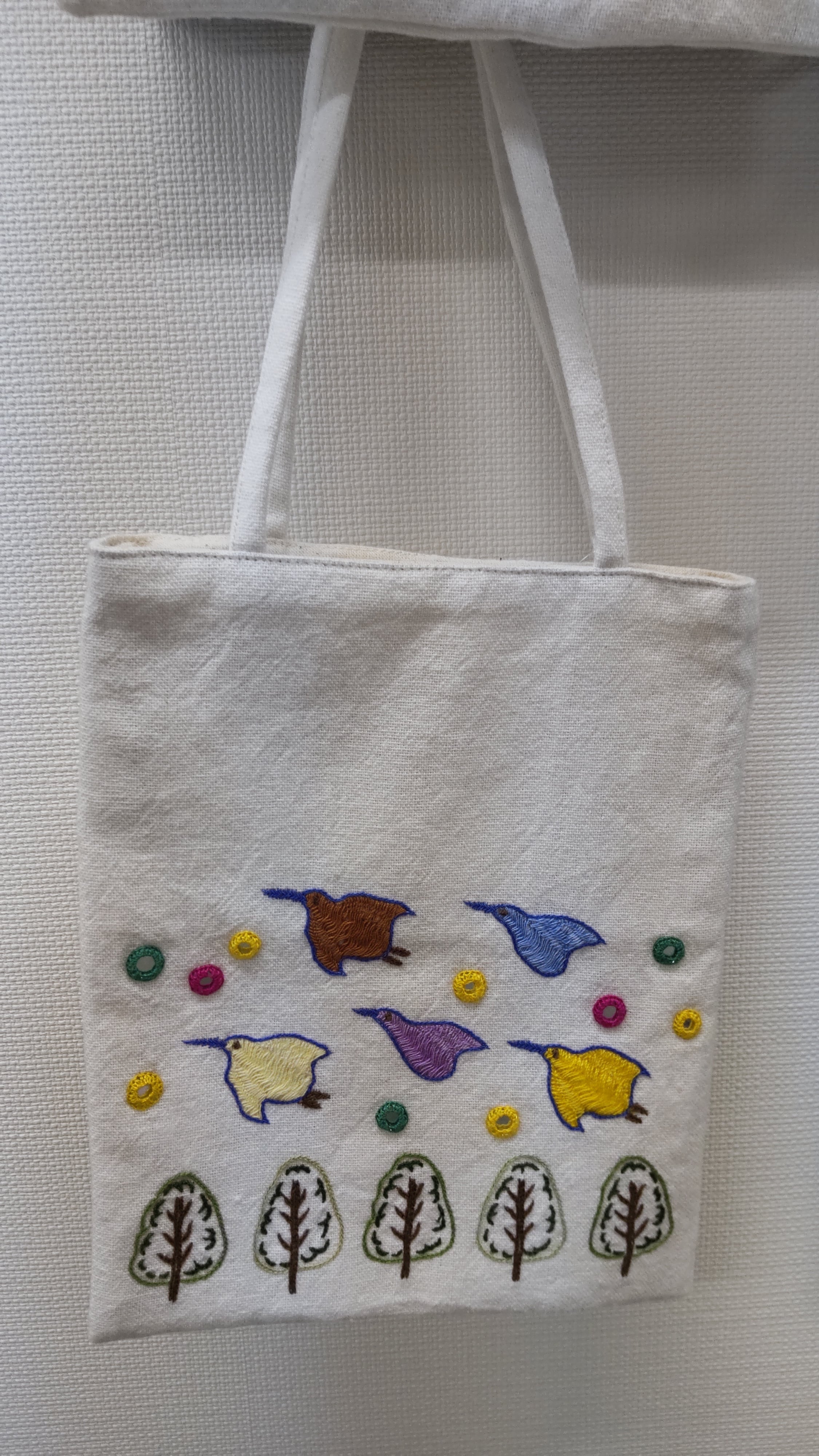 小さな鏡が手刺繍されており、色鮮やかなミラー刺繍バッグ